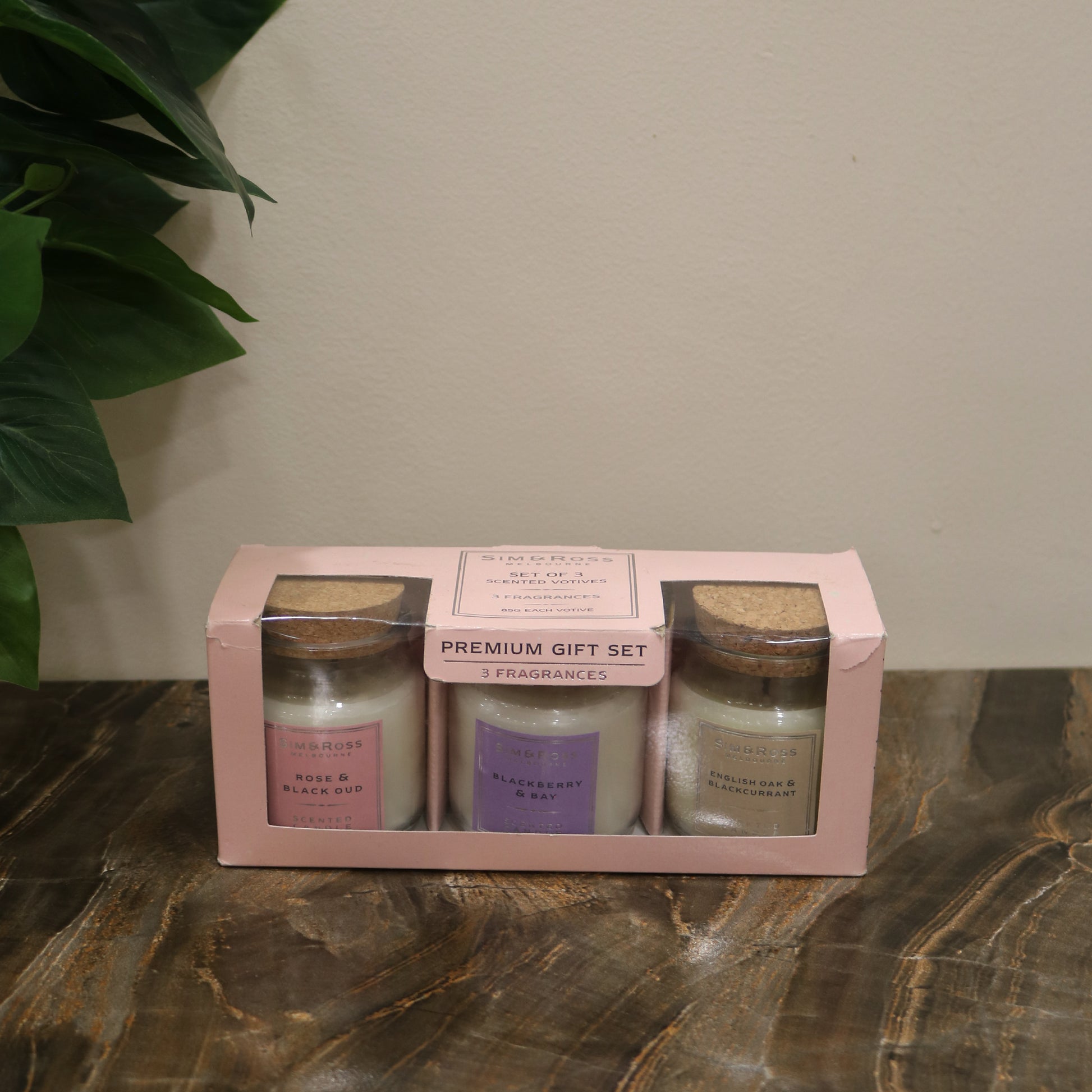 The Sim & Ross Luxury Scented Candle Set brings a blend of sophisticated, rich fragrances to your home. This set includes three carefully crafted candles, each with its own unique scent profile: the romantic allure of Rose & Black Oud, the earthy warmth of English Oak & Blackcurrant, and the fresh, fruity notes of Blackberry & Bay. Perfect for adding elegance and warmth to any space, this set makes a thoughtful gift or an indulgent treat for yourself.