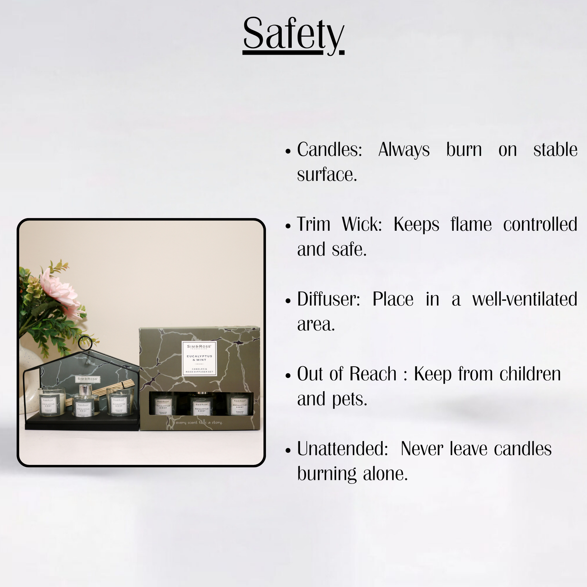 The refreshing blend of Eucalyptus & Mint fills your home with spa-like calm and clarity — cool, clean, and uplifting. Perfect for bedrooms, living rooms, or workspaces, it brings a sense of balance and freshness wherever it’s placed.